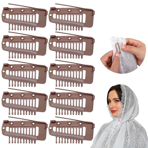 Paifeancodill Chunni Clips with Safety Pins, 10 Pcs Strong Chunni Grip Dupatta Setting Clips Indian, Snap Clips Hair Extension Clips Wig Clips to Secure Wig Clips with Rubber U-Shape Snap (Brown)