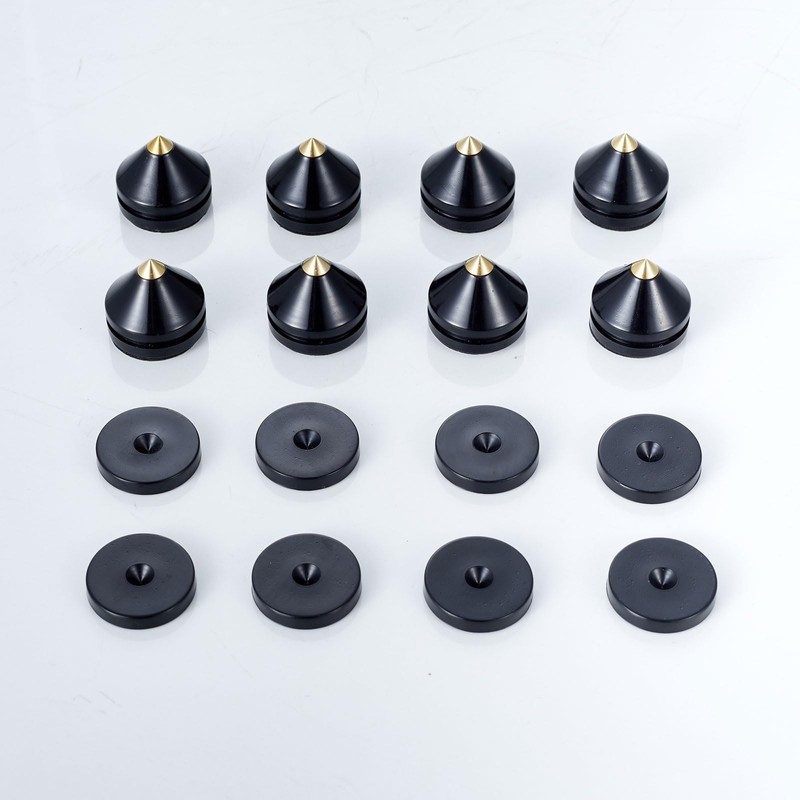 Pailvens Speaker Spikes Floor Protectors 8pcs, Light Weight Shockproof Speaker Isolation Stand Feet for HiFi Amplifier, Subwoofer, DAC Recorder, Turntable, Cone Base Pad with Adhesive, Black