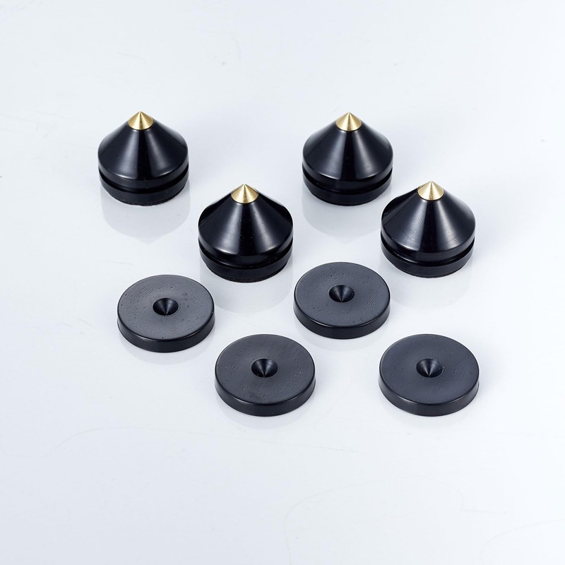 - STABLE & ROBUST - The bass absorber made of ABS and AS, guarantee the best stability, high quality workmanship for long life. Maximum load capacity of 300 kg per 4pcs fits most speakers and devices.