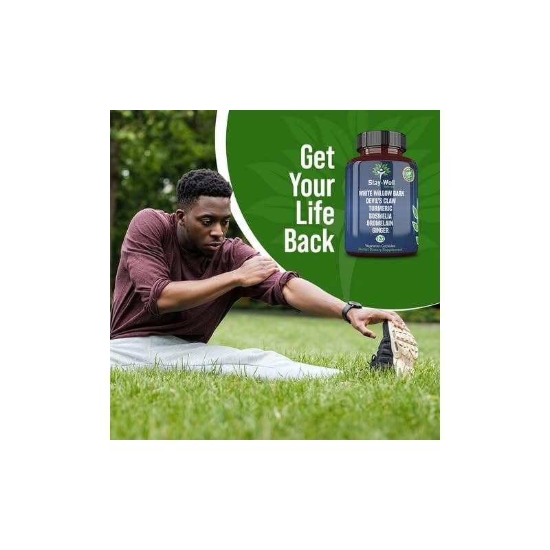 Life is too short to live with discomfort. Strenuous exercise can leave us with minor pain and post-exercise inflammation resulting in sore muscles and stiff joints. If you want to get back in the game, you need a natural source for relief you can count on! At Stay-Well Naturals, we are committed to bringing you proven solutions to improve your quality of life. This unique formula combines herbs that are time-tested and research-backed for soothing the discomforts that come with an active life. White Willow Bark has been used for centuries thanks to a powerful compound it contains called salicin. Once absorbed, salicin helps us maintain healthy levels of inflammatory compounds, boosts antioxidant activity, and helps relieve joint discomfort. Devil’s Claw is rich in bioflavonoids, which are antioxidants that play numerous beneficial roles in the body. It has been used extensively throughout history to help us find relief from occasional discomfort. Today, research has proven its value in this area. One study showed that the combination of Turmeric, Devil’s Claw and Bromelain helped virtually every participant experience healthier joints and more comfortable movement. Bromelain is an enzyme derived from pineapple, and it has been shown to help offer a degree of relief to patients recovering from surgical procedures along with other health promoting applications. Boswellia is added for its long history of use and range of benefits. You may know this plant as Frankincense, which has a rich history of being revered for its health promoting properties. Studies now show why Boswellia has been highly sought after for thousands of years. Ginger rounds out our formula with its muscle soothing benefits. Studies show that Ginger and Turmeric are a synergistic blend for easing minor discomforts. When you want to get back to your active life, our product can help support your recovery and help you move with ease again!