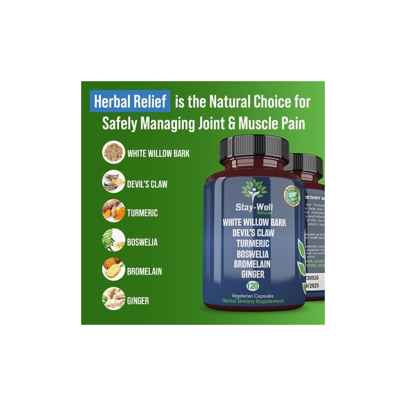 - Find Relief Naturally – This expertly formulated blend is designed to give you the relief you have been looking for. We combine the time-tested herbs White Willow Bark, Devil’s Claw, Turmeric, Boswellia, and Ginger with the enzyme Bromelain.