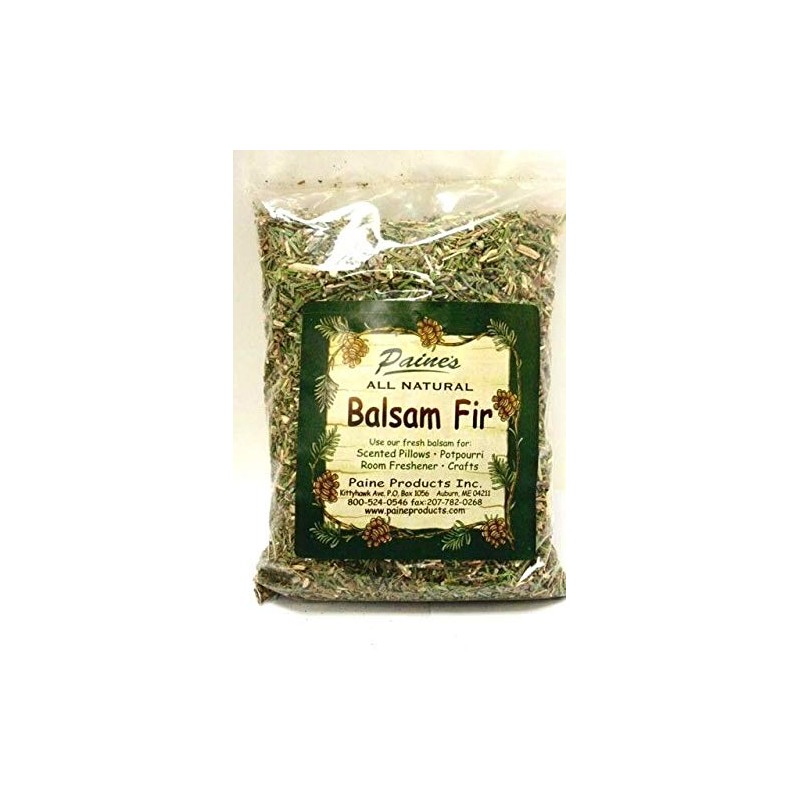 BALSAM FIR - ALL NATURAL BY PAINE'S - MADE IN MAINE, USA. NOTE: sizes of bags are approximate - they are not all exactly the same. size usually varies from 14-18 ounces They come to us prepackaged by the manufacturer. Balsam Fir is ground from tips of Christmas trees, giving it the wonderful smell! Use fresh balsam for: scented pillows potpourri room freshener crafts etc.