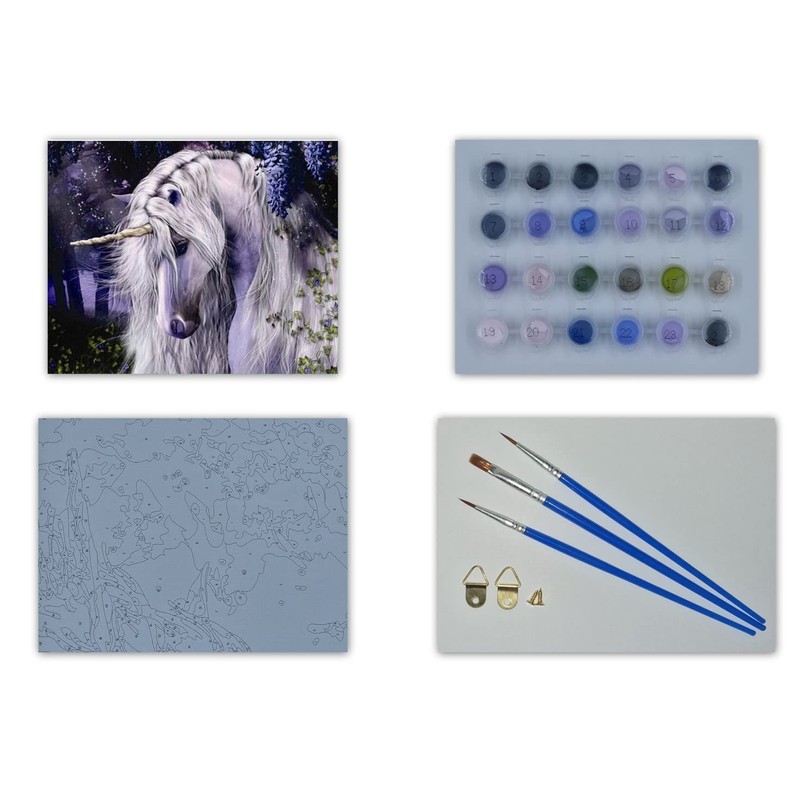 - The picture "white unicorn" for self-painting is also ideal as a gift. The large selection of other designs leaves nothing to be desired.