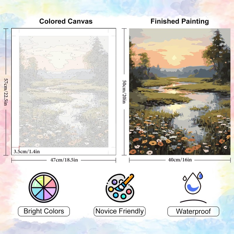 Paint by Numbers Kit for Adults Beginner, Countryside Sunset Adult Paint by Number Kits on Canvas Without Frame, DIY Wildflowers by the River Paint by Numbers for Home Wall Decor Gift 16x 20 Inch