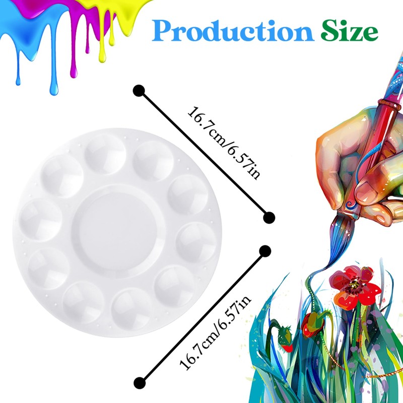- 🖌Easy-To-Clean Plastic Paint Palette🖌: Watercolor pallet made of sturdy and resistant white plastic for long term use, large paint palette can be used to hold oil or water based paints and has the advantage of being easy to clean. The paint trays for acrylic paint is designed with a finger hole, there are 10 grooves in total, The acrylic tray including 6 round grooves and 4 irregular wells. In this way, the different shapes of the paint palette's "grooves" can accommodate your creative ideas.