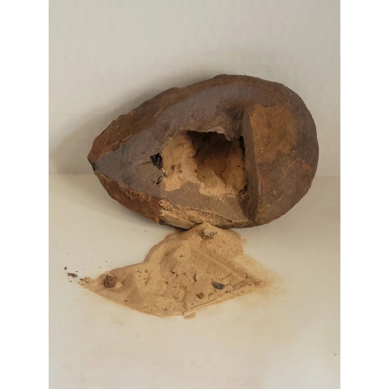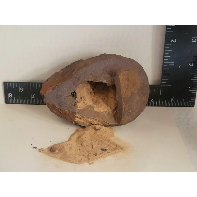 You cut or break them open and pour out the powder. Then you mix the powder that comes out of the rock, with a little bit of water to make a paste. This will give you a type of natural paint or dye. Works good on cloth.