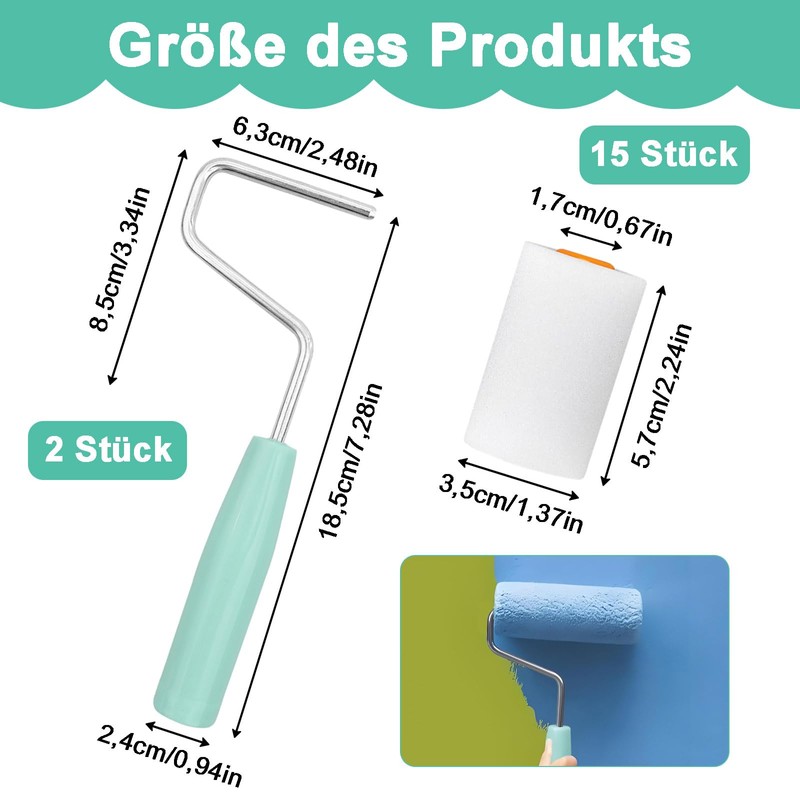 - You will receive a 17-piece paint roller set with 2 roller brushes and 15 small paint rollers, the roller brushes measure 18.5 x 6.3 x 2.4 cm and the small paint rollers measure 5.7 x 3.5 cm.