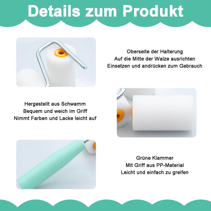 - This paint roller is made of sponge material, which is comfortable and soft to the touch and lightweight, and the green holder is made of PET material, which has a smooth appearance and does not scratch your hands easily.