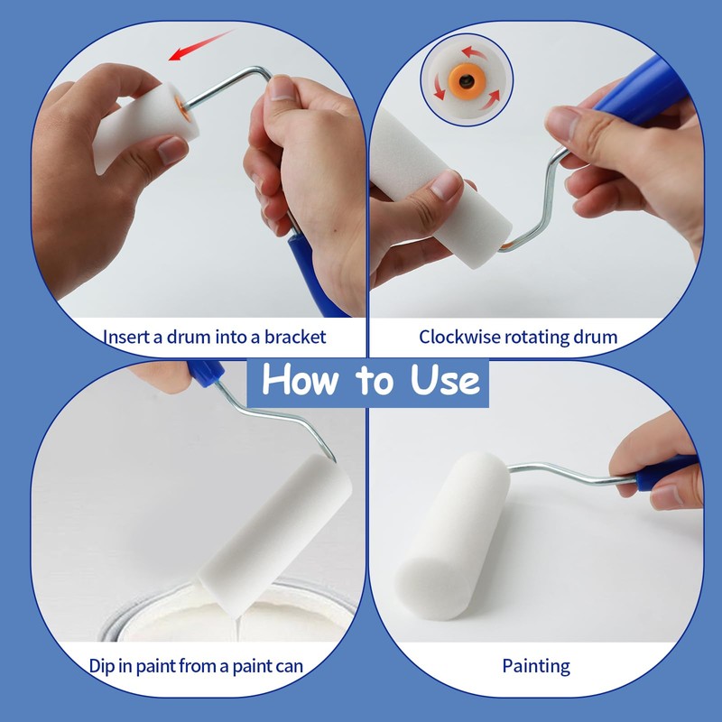 • [Easy to Clean] Our roller sets for painting are designed for hassle-free cleaning. Simply rinse it with warm water and mild soap and it's ready to use again. The mini foam roller cover ensures that the appearance of air bubbles is minimised.