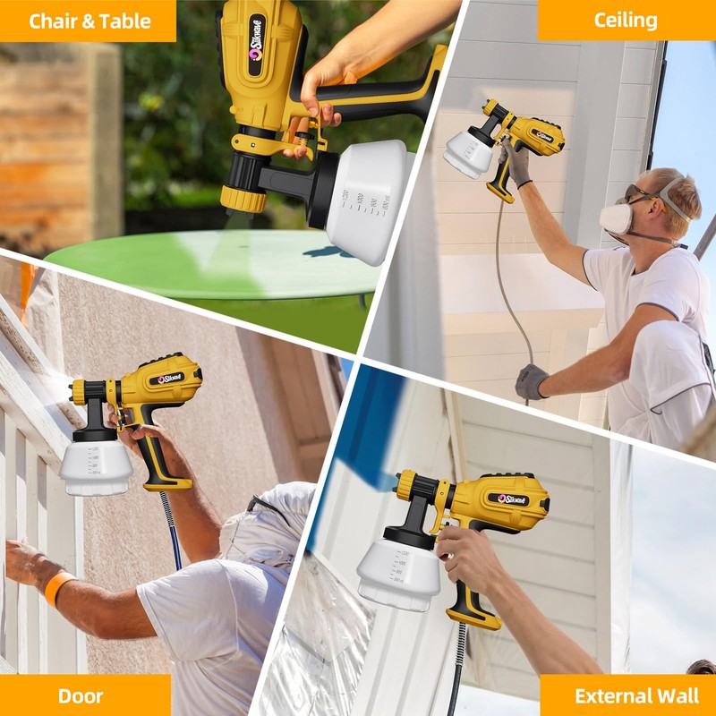 Paint Sprayer,700W HVLP Spray Paint Gun, Electric Paint Sprayers for House Painting, Power Spray Gun with Cleaning & Blowing Joints, 4 Nozzles and 3 Patterns for Furniture, Fence, Garden (Yellow)
