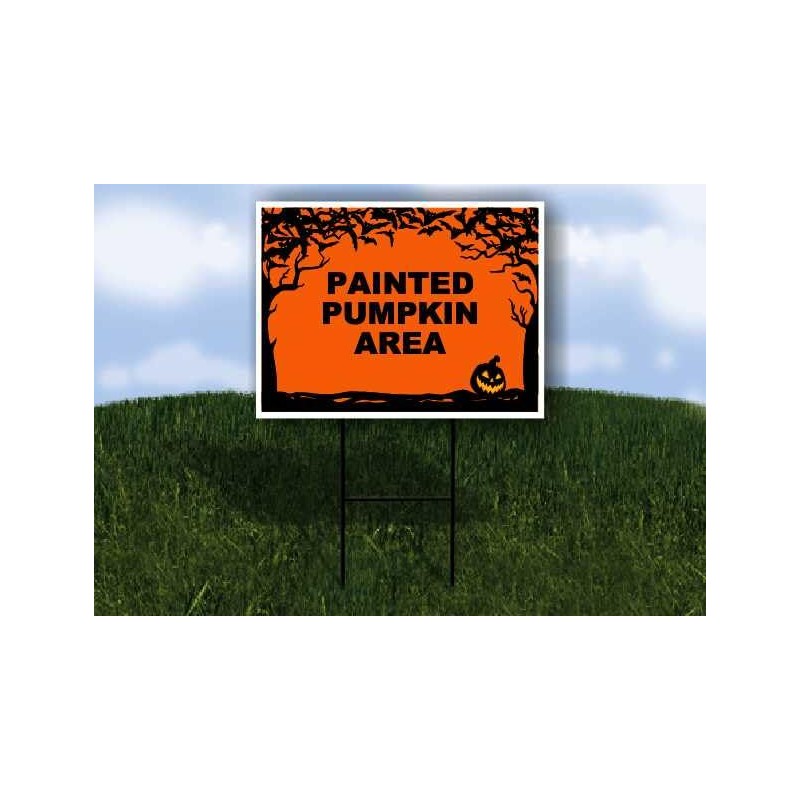 PAINTED PUMPKIN AREA Halloween Bats and Jack O Lantern 1 Double Sided 18x24 in Yard Road Sign w/stand