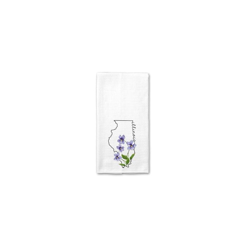 PainterDesign Illinois Kitchen Towel - Illinois Dish Towel - States Kitchen Towels - U.S. State Souvenir - Moving to Illinois Housewarming Gift - Illinois Flower Lover Gift - Illinois State Towel