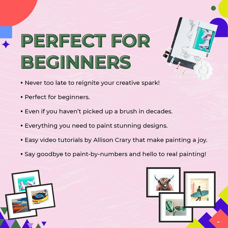 - Create Art with Confidence: The Painting4Real DIY Painting Class Kit empowers artists of any level with a flexible painting experience. Enjoy step-by-step video tutorials that you can pause and rewind at your own pace, making it easy to learn techniques like brushwork, color mixing, and shading. This kit helps you make each piece personal while boosting confidence.