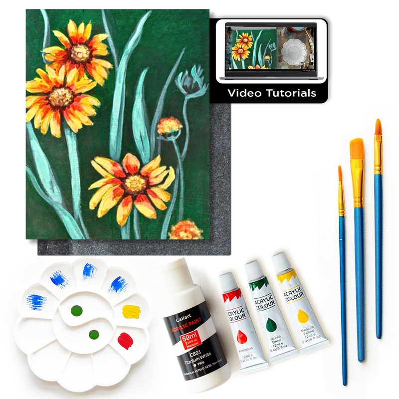 Painting4Real DIY Painting Kits for Adults with Video Tutorials: Learn to Paint Golden Spring Flowers – How to Paint with Acrylic Paint Kit – Painting & Art Supplies Kit – 9 Piece Acrylic Paint Set