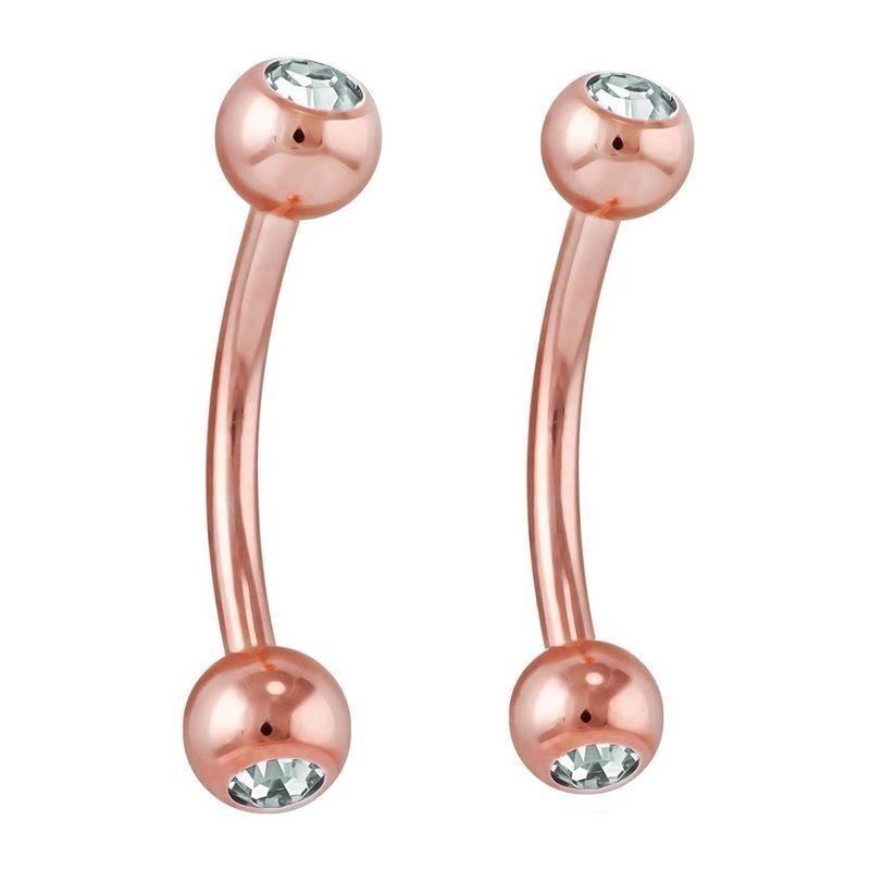 PAIR 16G DOUBLE CZ ROSE GOLD STEEL CURVE BARBELL EYEBROW RING VCH JEWELRY TRAGUS