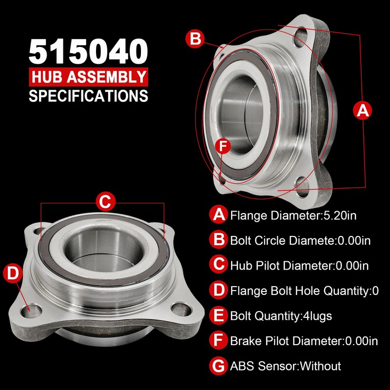 - SPECIFICATION - ①Position: Front Left and Right Axle; ②Flange Diameter: 3.78; ③Bolt Circle Diameter: 5.2; ④Hub Pilot Diameter: 3.78;⑥Wheel Stud Quantity: 4;