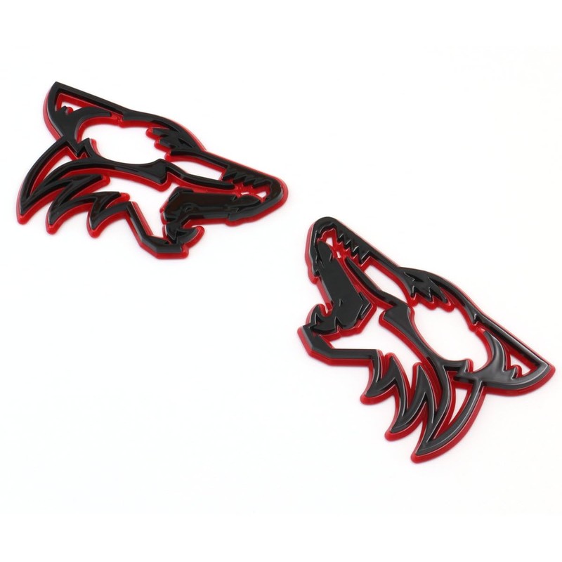 Pair Custom Dark Horse Style Coyote Emblems Door Left Right 3D Badge Compatible with Mustang,Universal Car Vehicle, Truck, Motorcycle (Black Red)