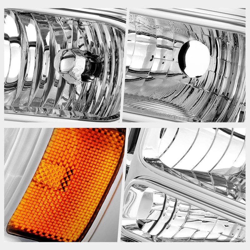 [Pair] Factory Style Headlights Assembly Compatible with 99-04 Ford F250 F350 F450 F550 Super Duty Excursion,Chrome Housing Amber Corner