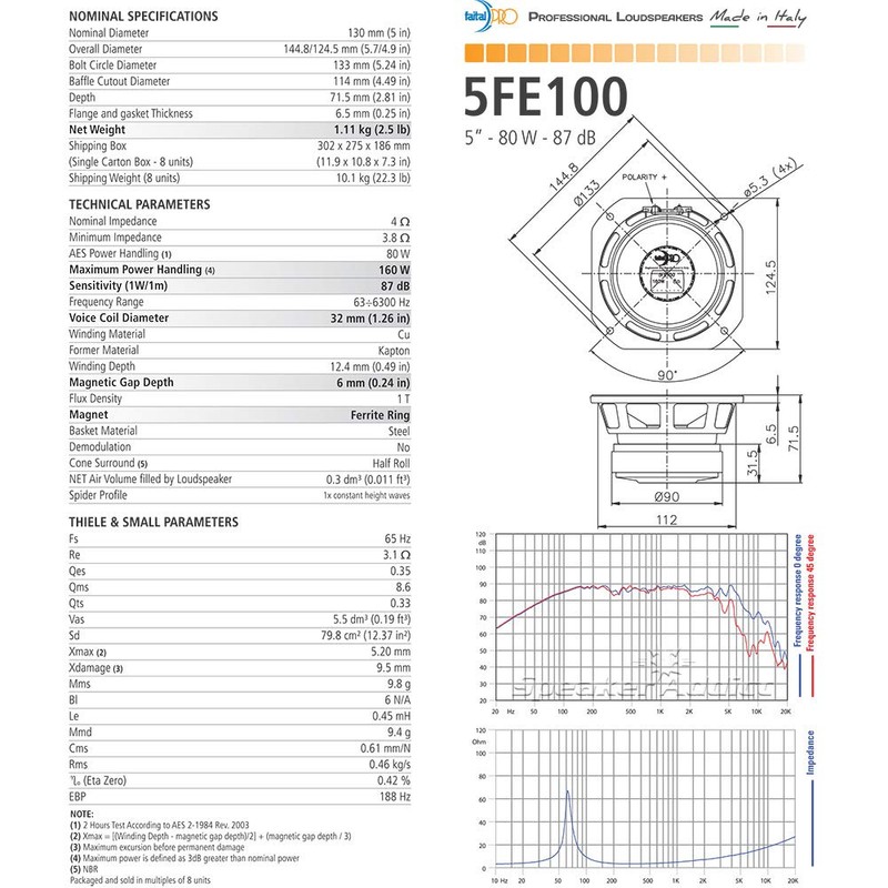 Pair FaitalPRO 5FE100 5" Professional Midbass Midrange Woofer 4 Ohm