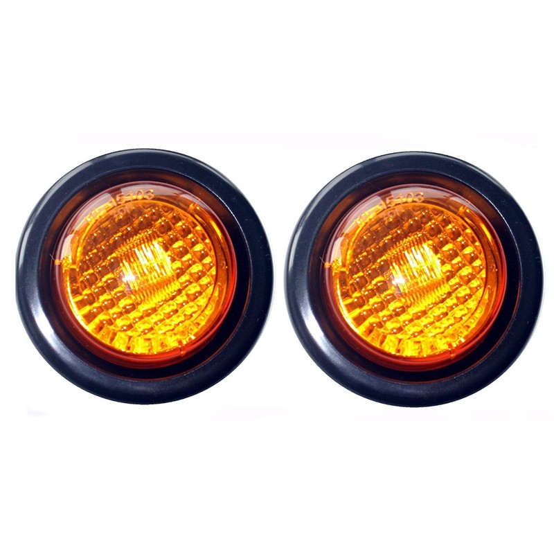 Pair of 2 LED 2" Round Clearance/Side Marker Light Kit Amber with Light and Grommet Truck Trailer RV 15103AK