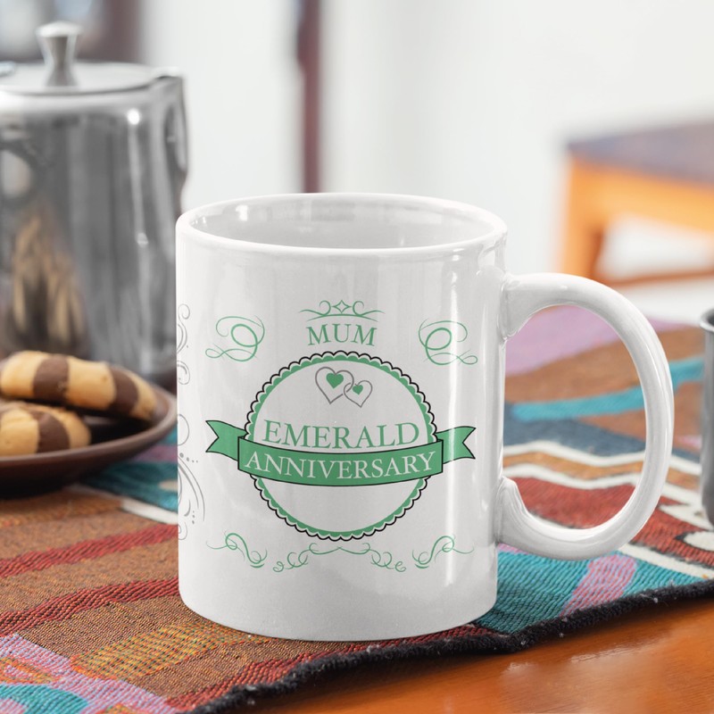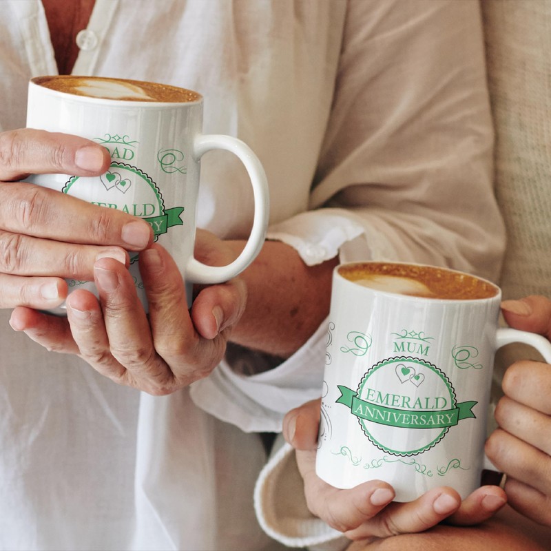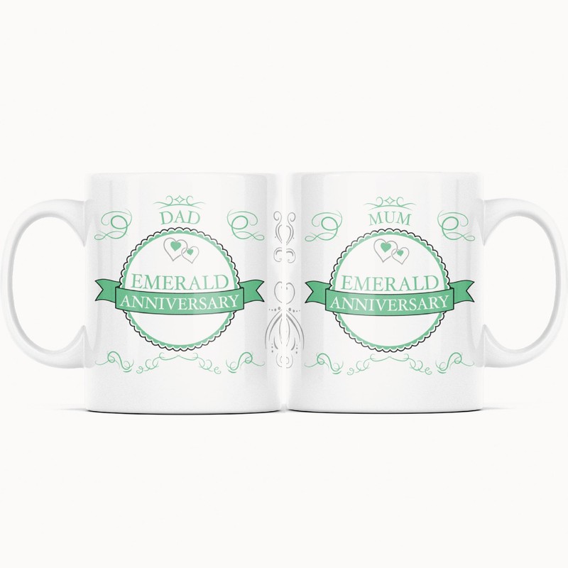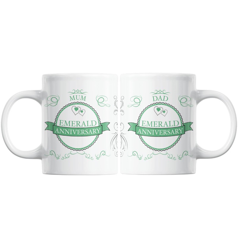 Pair of (55th) Emerald Anniversary (Mum + Dad) Novelty Gift Mugs - Swirls/Rosette Design