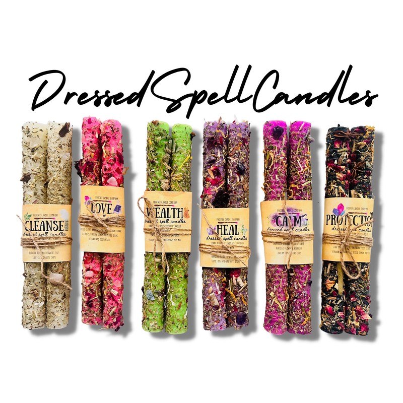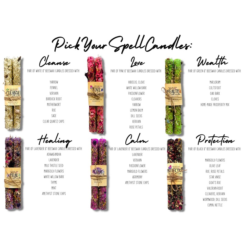 - BEAUTIFUL SPELL CANDLES - Beautiful hand-rolled beeswax spell candles decorated with their correpsonding magical herbs, flowers and stone chips (if applicable).