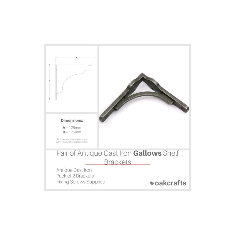 Pair of Gallows Shelf Brackets Antique Cast Iron (5.0" x 5.0" / 125mm x 125mm)