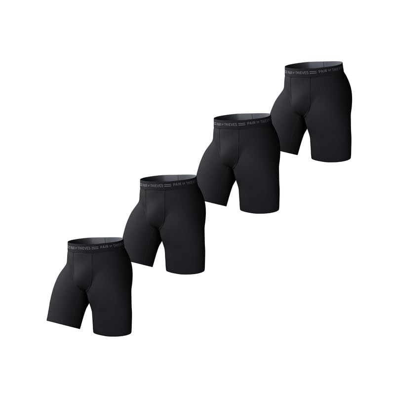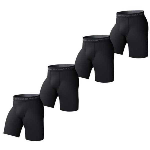 Pair of Thieves Every Day Kit Soft Cotton Long Boxer Briefs for Men Pack (4 Pack), Black/Grey, Large