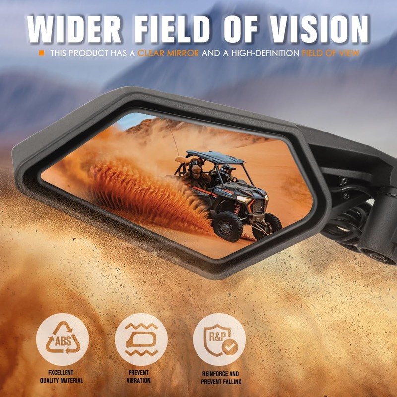- 【Safe Drive】UTV Mirrors Provides You a High Definition and Wider Vision, Easily Seeing The Upcoming Cars and Obstacles, Eliminate Blind Spots Sight, Helping to Ride Safely.