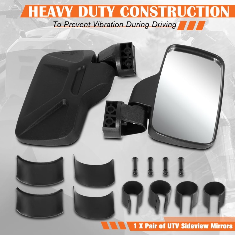 - 【Package Includes】1 X Pair of UTV Side View Mirrors (Left & Right Side).