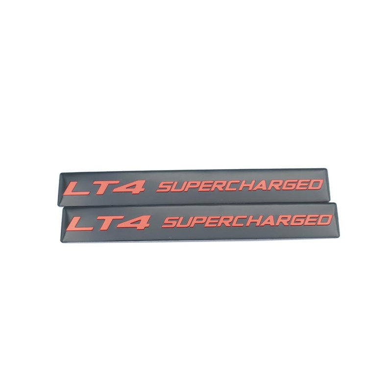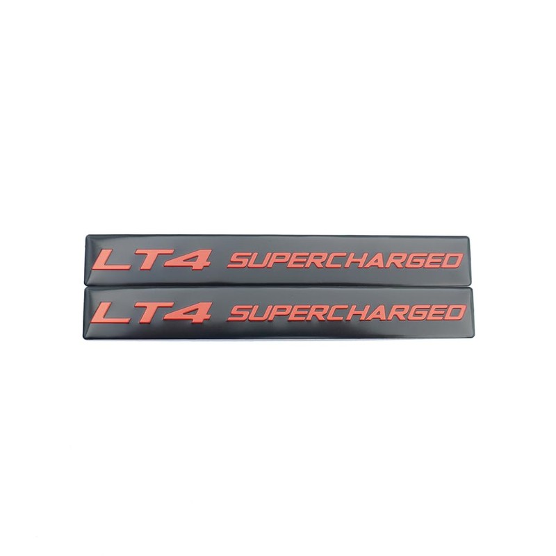 Pair Set LT4 Supercharged Highly Polished Real Aluminum Emblems Badge Nameplate (Black Red)