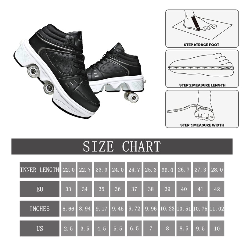 - Unleash joy and adventure: Our sneakers roller skates make fantastic gifts for children and provide teens with a thrilling outdoor activity to skate with friends. Roller skating promotes an active lifestyle, relieves stress, and boosts confidence. For adults seeking leisure activities, our roller skates offer a break from the daily routine and a chance to have fun.