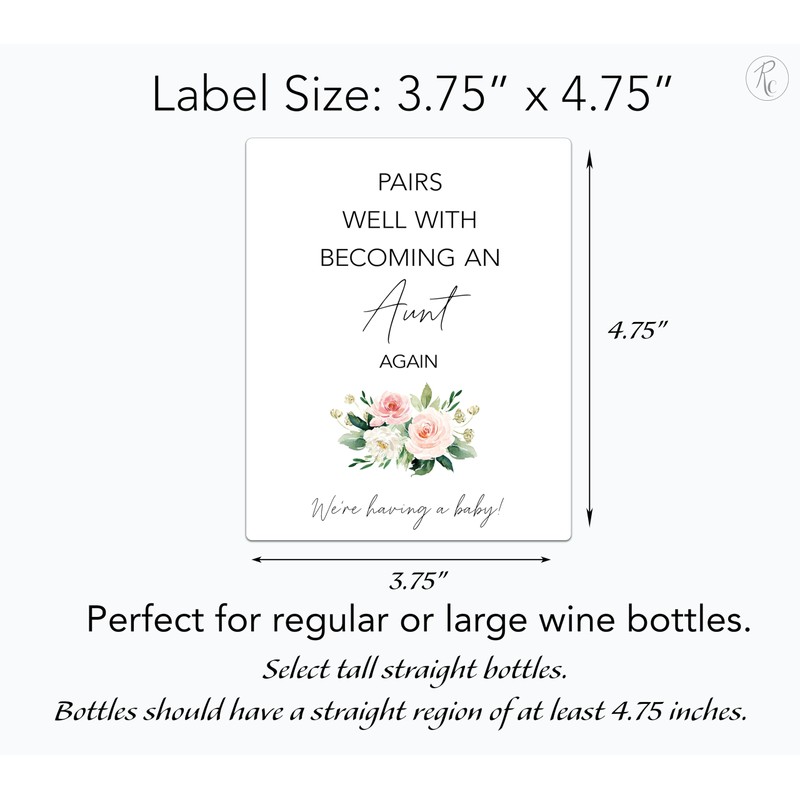 - SET OF 4: Includes Minimalist style, "Pairs well with becoming an AUNT again" wine labels. A unique funny “We are having a baby” second pregnancy announcement to friends, sisters and cousins. Great baby announcement gift!