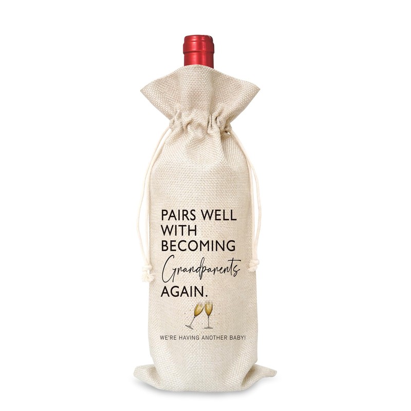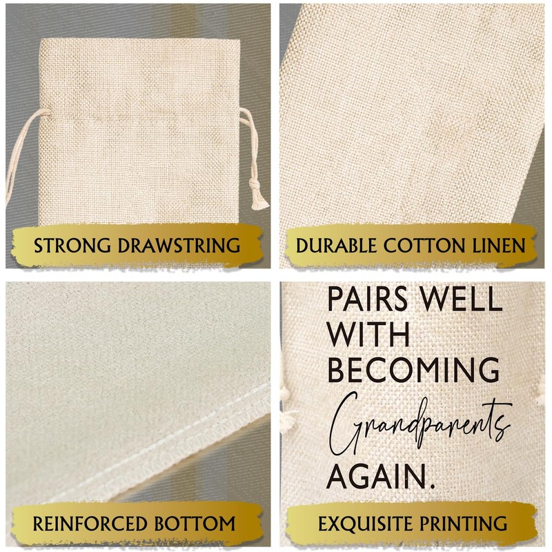 Pairs Well With Becoming Grandparents Wine Gift Bag, Wine Bag for Pregnancy Announcement, Grandfather, Grandmother, New Baby, Cotton Linen Wine Gift Bag With Drawstring, Party Favors Decorations-15