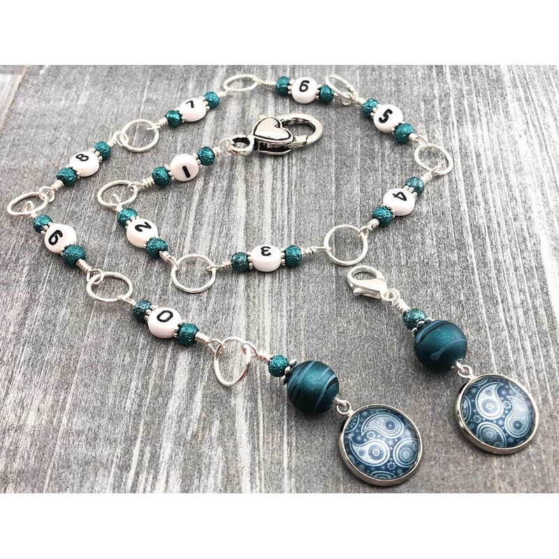 - Row counting chain is 16 1/2 inches long. Included is a seperate clip on progress keeper.