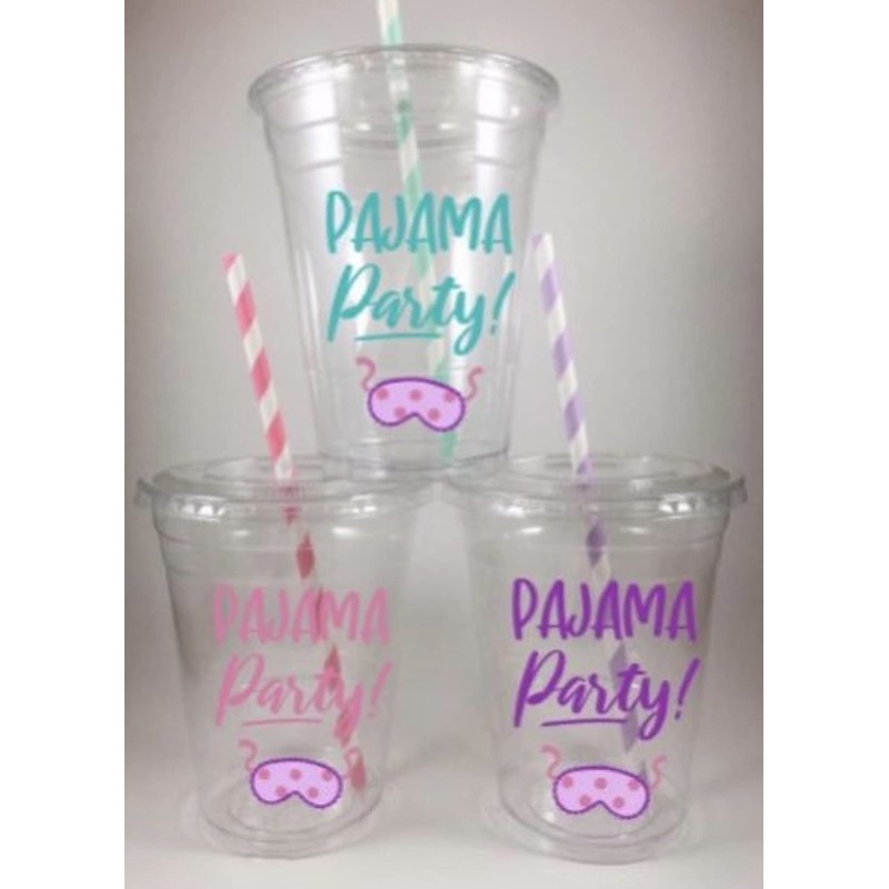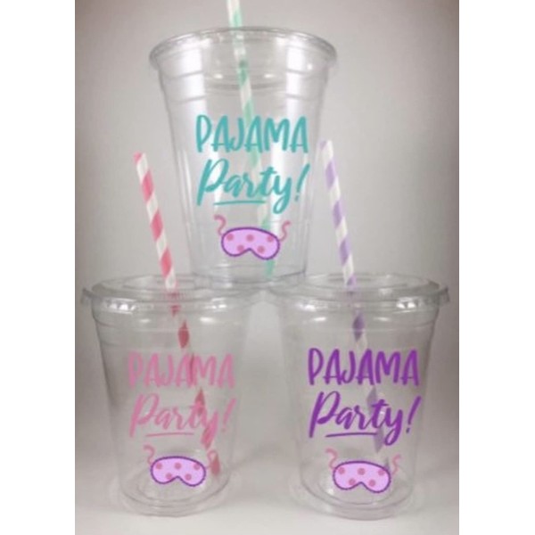 Pajama Party Cups Set 12 Disposable Lids Straws Sleepover