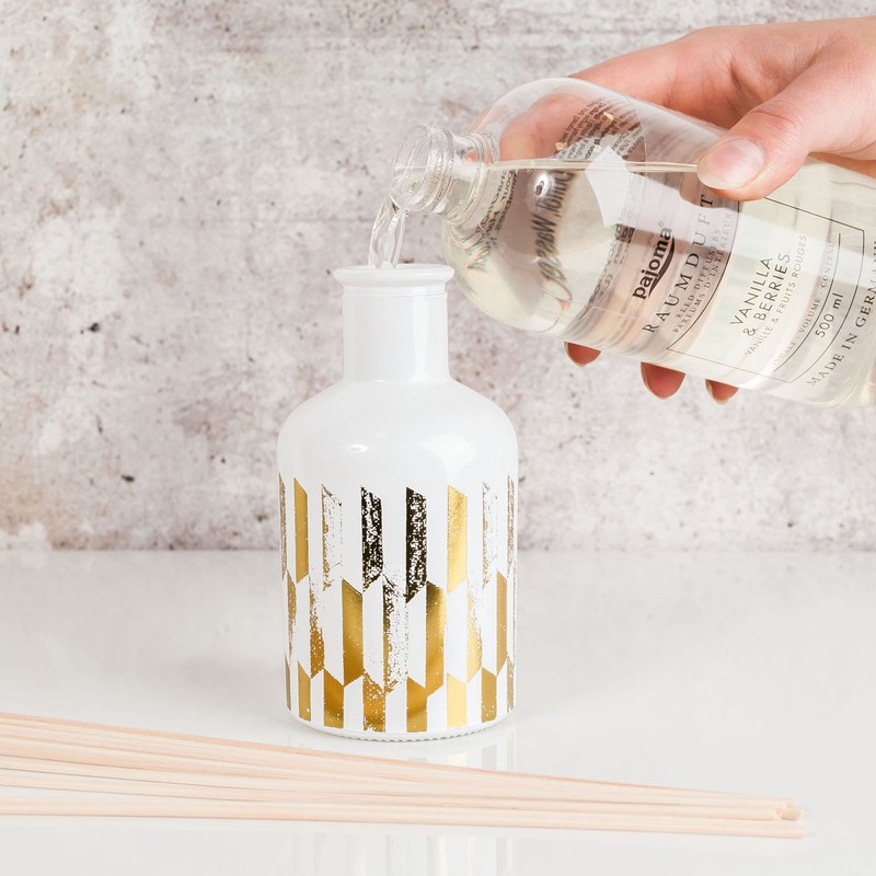 Aus zwei macht eins. So lautet das Motto des Raumduftes Vanilla & Berries. Zum einen hat er einen geschmackvollen Duft, zum anderen einen sehr fruchtigen. Gef??llt wird er in eine Raumduftvase, Rattanst?bchen kommen hinzu und schon kann der Duft in die Nase gelangen und mit seinem w?rmenden Geruch genossen werden.
