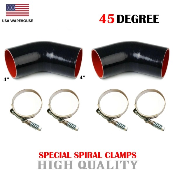PAKA HAND TOOLS 4" 45 DEGREE ELBOW COUPLER BLACK-RED SILICONE HOSE COUPLER TURBO PIPE + CLAMPS