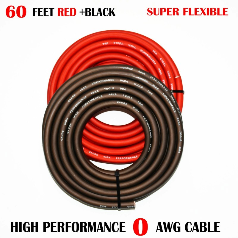 PAKA TOOLS 1/0 Gauge Wire RED/BLACK , Amplifier Power/Ground  Amp Wire 60 Feet Cable Roll