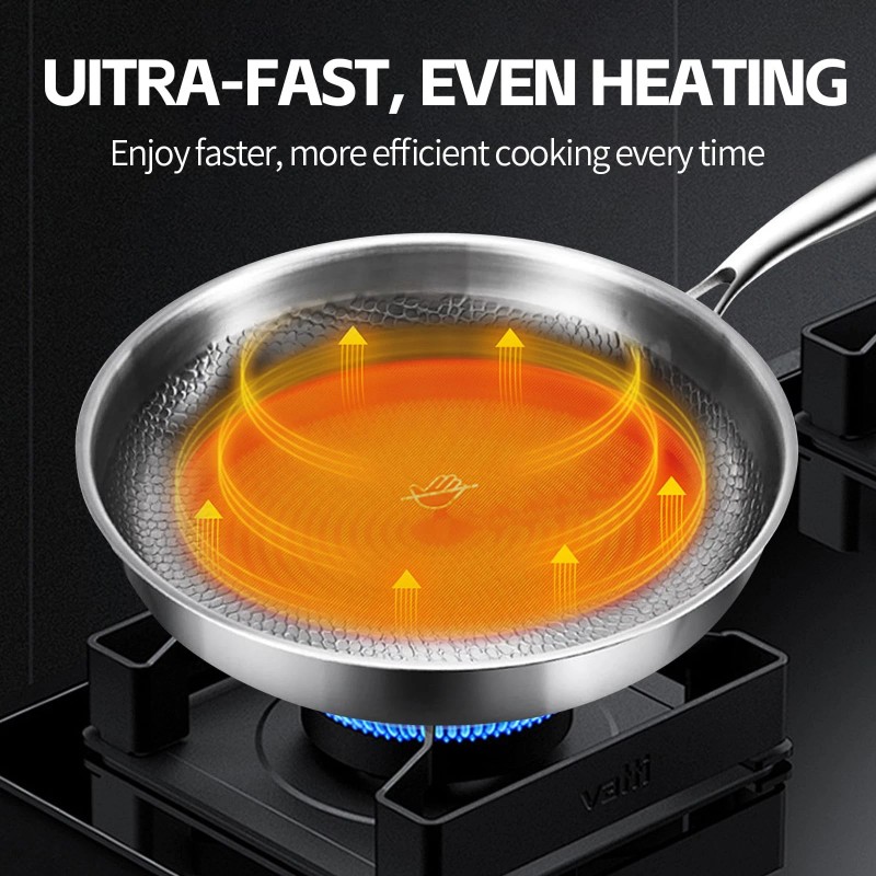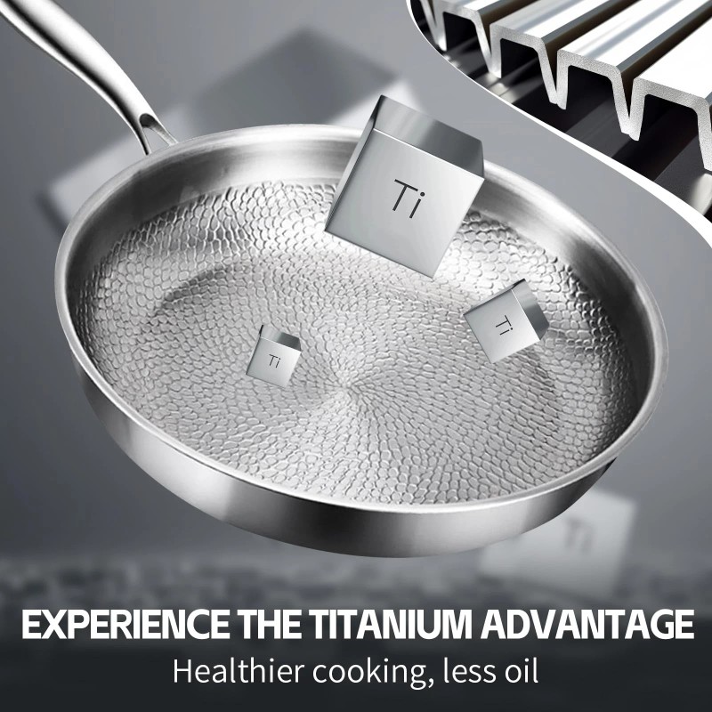 Elevate your culinary experience with our 100% Pure Titanium Pan—a revolutionary upgrade for modern kitchens. Crafted for unmatched durability and efficiency, this pan combines the lightweight superiority of titanium with the performance of a stainless steel frying pan, all while eliminating harmful coatings. Its 3-layer titanium hammered design ensures ultra-fast, even heating, eradicating hot spots for perfectly seared meats, crisp veggies, and golden-brown delicacies every time.