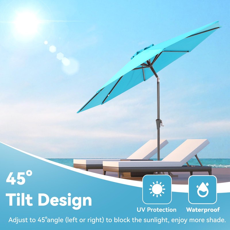 - Tilt And Crank And Air-vent Design: You can adjust the outdoor patio table umbrella to 45°angle (left or right) to block the sunlight, enjoy more shade. With crank system make you easy open and close the outdoor table umbrella. Air-vent top allow air flow while adding extra stability against gusts of wind