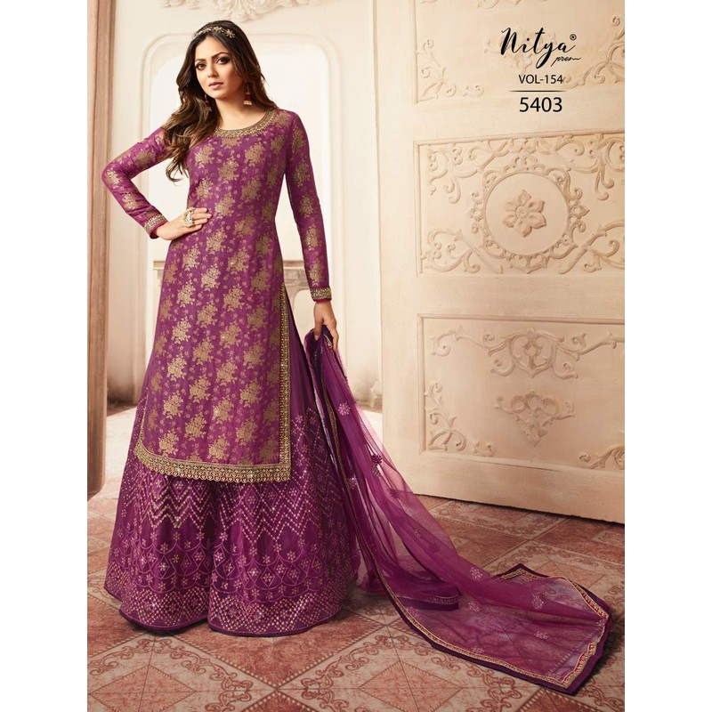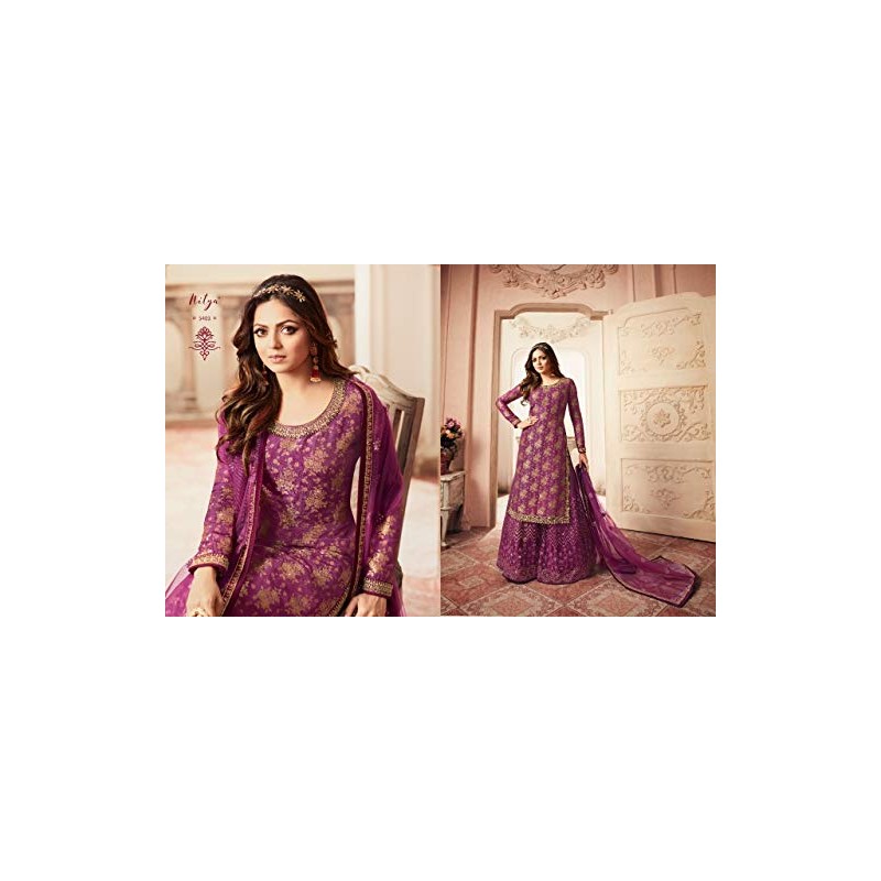 Pakistani Dresses for Women Palazzo Style Embroidered Salwar Kameez Suit Nitya 5401 (Purple, 38)