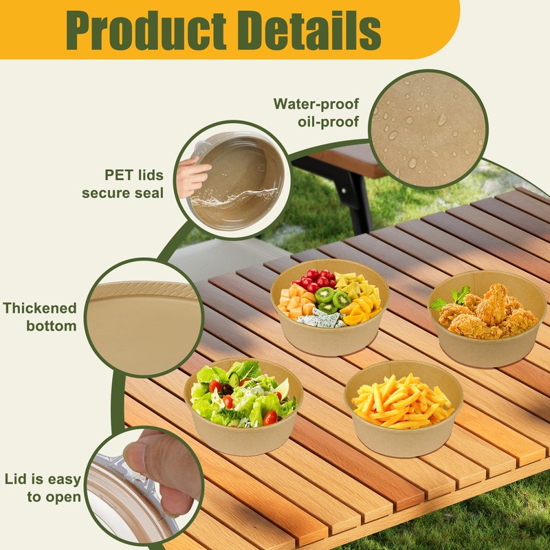 • 🛡️ Spill-Proof Protection for Hot/Cold Foods: The leakproof paper bowls feature double-sided lamination, making them waterproof, oil-proof, and leak-resistant. These microwave-safe containers are perfect for both hot and cold foods
