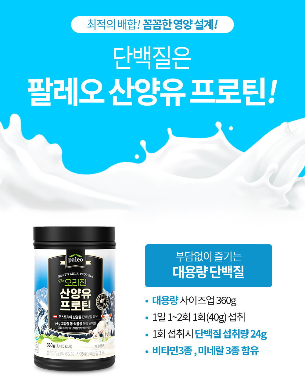 팔레오 고칼슘 오리진 산양유 프로틴 360g 2통