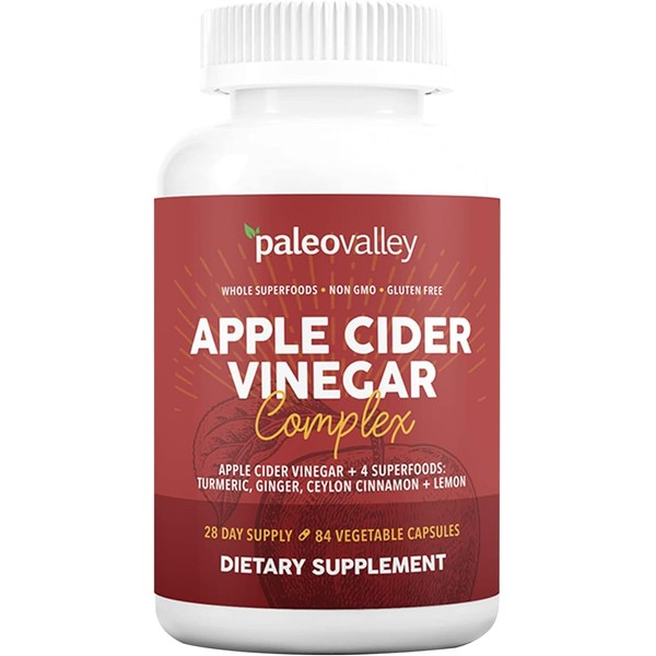 Paleovalley Apple Cider Vinegar Complex with Superfoods - Turmeric, Ginger, Ceylon Cinnamon and Lemon - 84 Vegetable Capsules