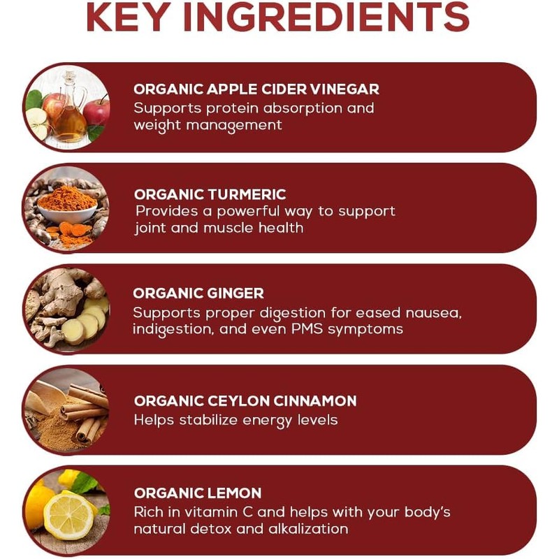 • Pure, Safe And Organic Ingredients: Apple Cider Vinegar Complex contains 5 organic superfoods, without any fillers or flow agents, and it does not contain any gluten, grain, soy, dairy or GMOs.