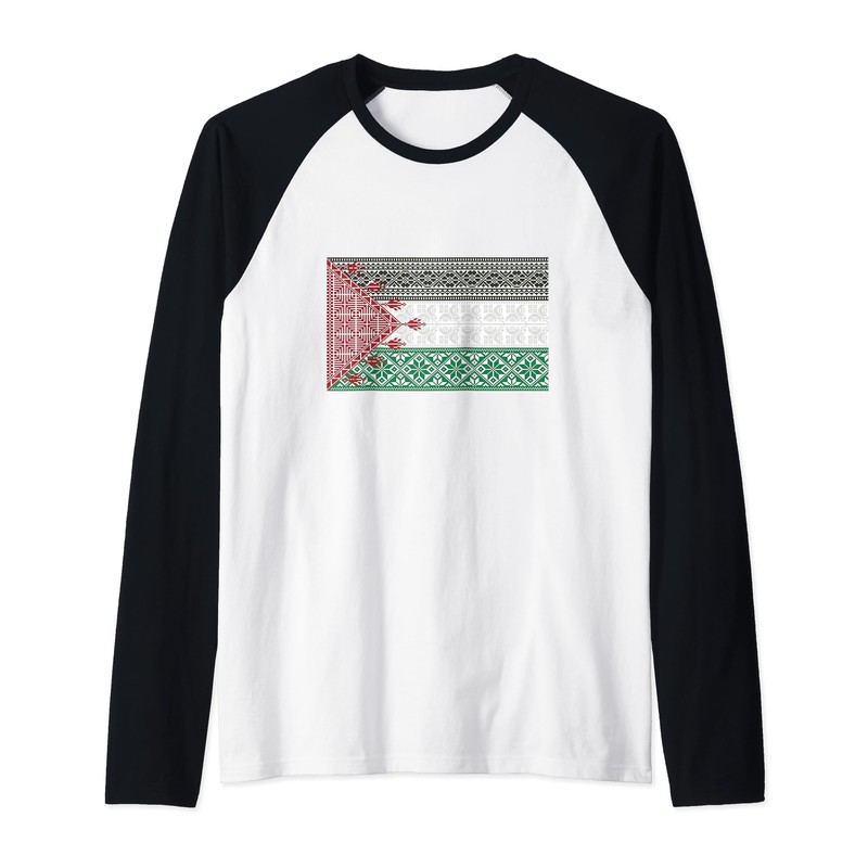 Palestine Flag Tatreez Cross Stitch Pattern Traditional Raglan Baseball Tee