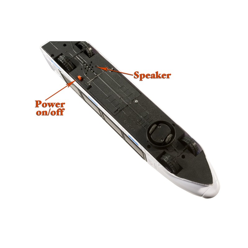 Once you have inserted 3 AA batteries (not included) and operated the slide switch, the electric toy train moves on it’s own on straight surfaces. The 5 flashing LED lights of the electric locomotive light up little ones eyes. Little ones love watching the electric train for hours.