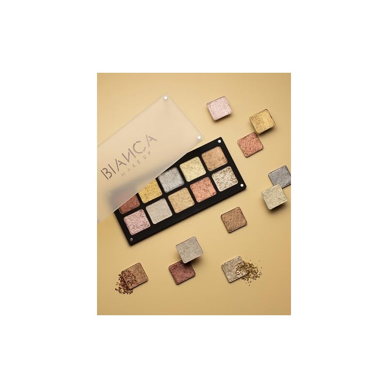 Paleta de Sombras Cromáticas | Bianca Makeup | Acabado Multicromático | Alta Pigmentación y Larga Duración | Fórmula Cremosa con Ácido Hialurónico | Estuche Imantado | 10 Tonos Vibrantes para una Creatividad Ilimitada (Metal)