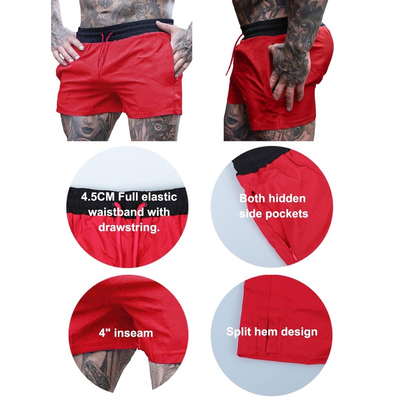 • Split hem designed for easy movement when running or workout; 4.5CM Full elastic waistband with drawstring for comfort.